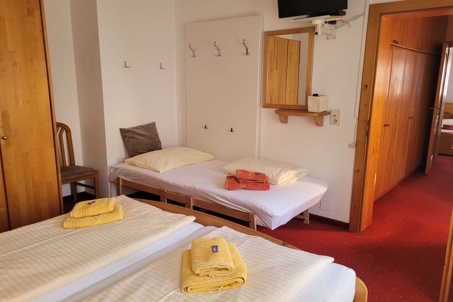 2 Schlafzimmer mit Doppelbett und Balkon (Zustellbett oder Kinderbett kann aufgestellt werden)